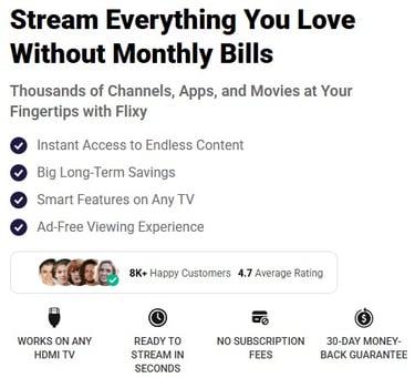 Turn any TV into a complete entertainment hub with the Flixy TV Smart Stick, a powerful and compact streaming device designed to deliver instant access to thousands of movies, TV shows, live channels, sports, and apps in stunning HD quality, all through a simple plug-and-play setup that works with almost any HDMI-enabled television; powered by a fast processor and optimized streaming technology, Flixy provides smooth playback, quick loading times, and an intuitive interface that makes navigation easy for users of all ages, eliminating the need for expensive cable subscriptions or complicated installations while giving you freedom to stream your favorite content anytime, anywhere. The Flixy TV Smart Stick supports popular streaming platforms and apps, includes a responsive remote control for effortless browsing, and is ideal for home use, travel, or secondary TVs, making it a flexible solution for modern digital entertainment needs. Right now, Flixy is available with exclusive bundle discounts, allowing you to save up to 75% depending on the package you choose: 1 unit for £73.99 each (50% off), 2 units for £54.45 each (60% off), 3 units for £44.95 each with free shipping (70% off), or the best-selling 4-unit package for just £39.90 each with free shipping (75% off), giving you the lowest price per device when purchasing multiple units and making it perfect for families or gifting. All orders are processed securely through the official website and include free shipping on selected bundles, ensuring fast and reliable delivery with no hidden costs at checkout. Backed by a customer satisfaction guarantee, the Flixy TV Smart Stick offers an affordable, user-friendly way to upgrade your viewing experience, cut cable costs, and enjoy unlimited entertainment on demand, making it a smart choice for anyone looking to modernize their home entertainment setup with a simple, cost-effective streaming solution.